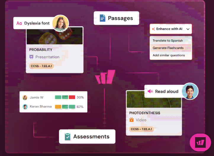 Wayground’s AI tools can generate or adapt activities from text and materials, reducing prep time when your word list changes weekly.